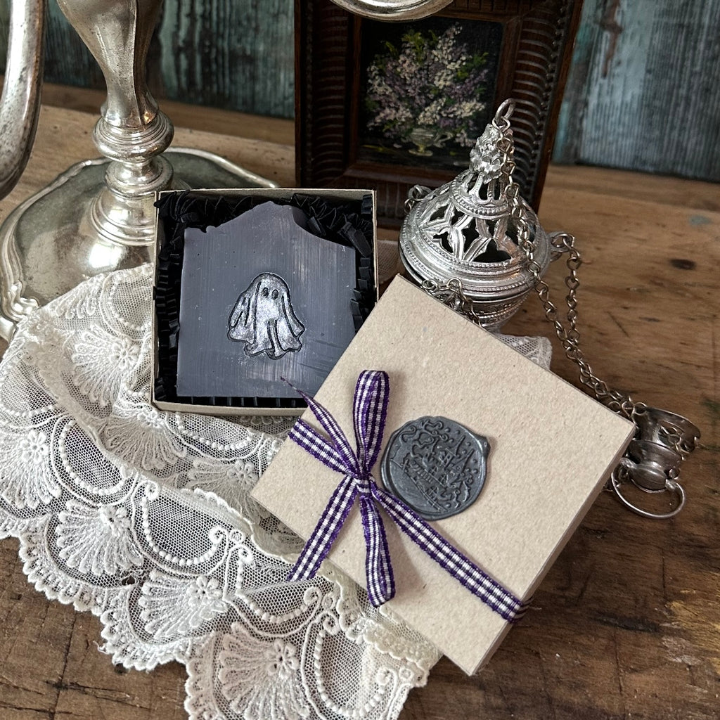 Die Seife ist verpackt im hübschen Geschenkkarton, ein schönes Geschenk um jemanden eine „schaurig schöne“ Freude zu bereiten oder sich selbst etwas Gutes zu tun!